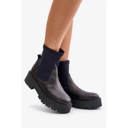 Zazoo 2947 Wsuwane Botki Damskie Ze Skóry Naturalnej Czarne