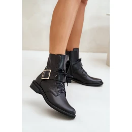 Zazoo 2949 Kožené Boty S Přezkou Černé