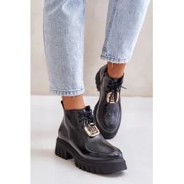 Zazoo 2952 Kožené boty se zlatou ozdobou černé