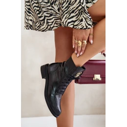 Dámské boty vyrobené z vysoce kvalitní přírodní kůže, které spojují eleganci a funkčnost. Model se zapínáním na zip s dodatečným šněrováním, což zajišťuje dokonalé padnutí na nohu. Na jazyku je umístěn zlatý detail, který dodává botám jemný lesk a výjimečný charakter. Při výběru velikosti se řiďte tabulkou velikostí.