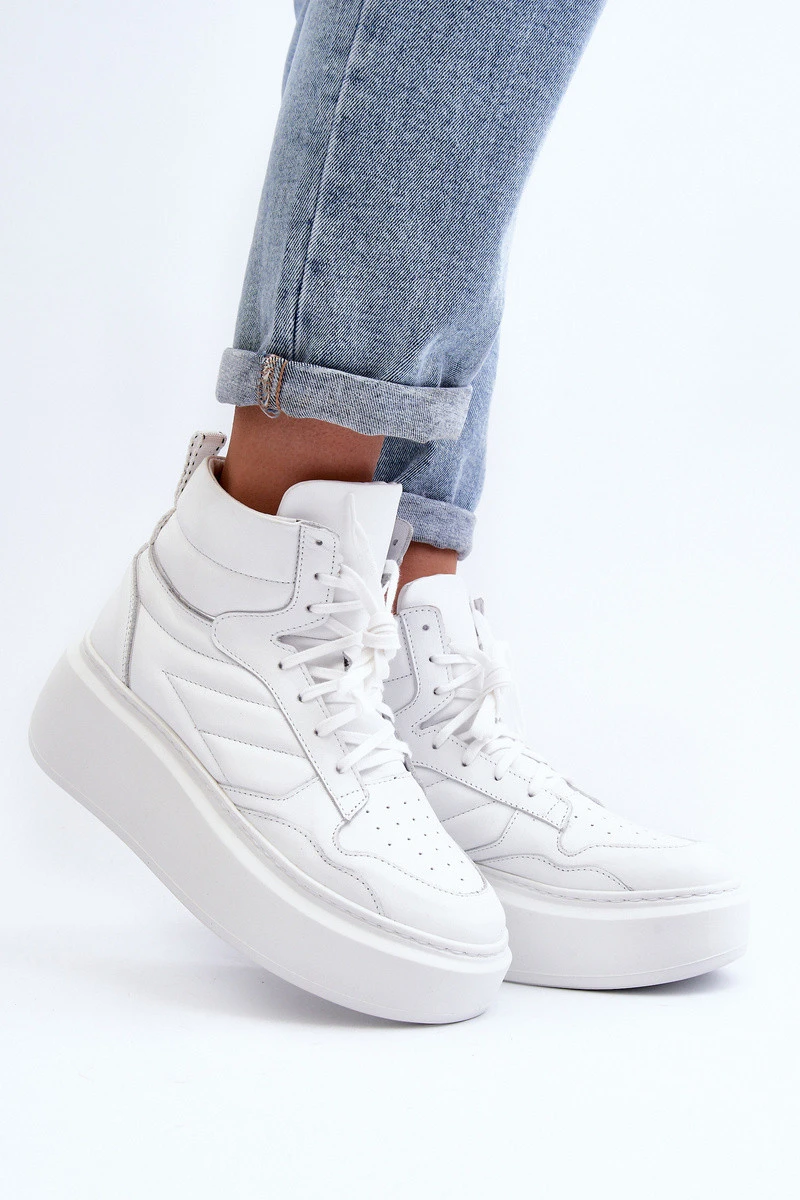 Zazoo 3392/X Dámské Kožené Sportovní Boty Na Platformě Bílé