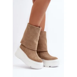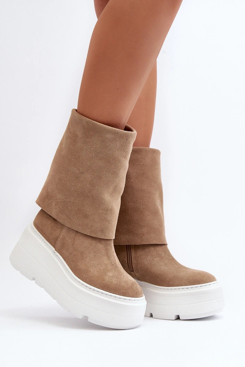 Zazoo 3410 Semišové Dámské Boty Na Masivní Platformě Bežové