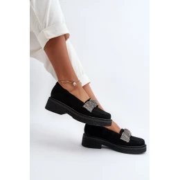 Zazoo 3419 Dámské semišové mokasíny s ozdobným páskem Černé