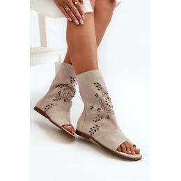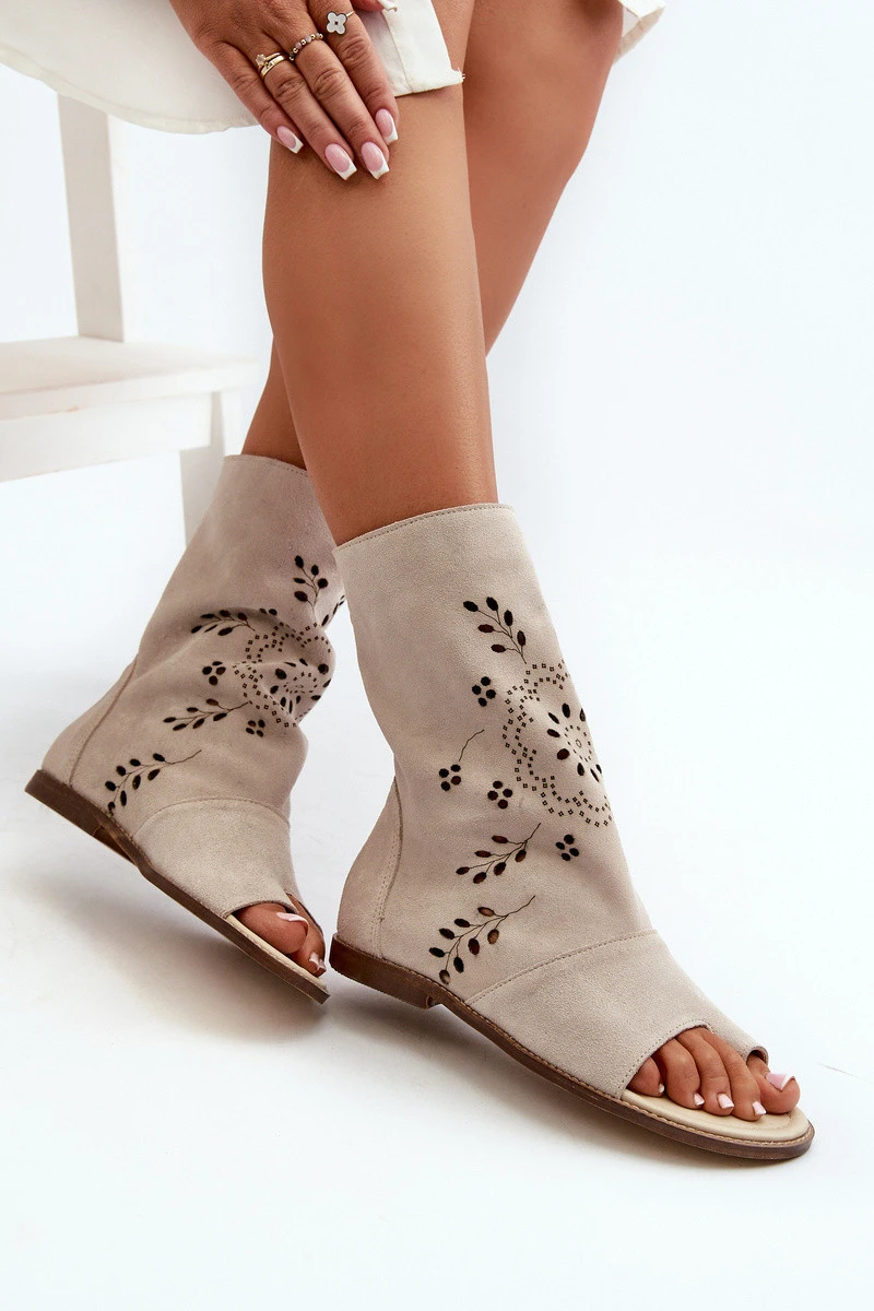 Zazoo 3437 Dámské Semišové Sandály S Hřbetem Na Zip Světle Béžové