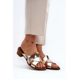 Dámské kožené žabky. Usazeny na nízkém podpatku. Kožená stélka zajistí pohodlí během nošení. Skvěle se hodí k mnoha stylizacím. Udělejte si radost koupí nového páru bot, které budou ideální na letní dny! Při výběru velikosti se řiďte tabulkou velikostí.