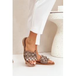 Zazoo 40381 Dámské Kožené Pantofle Na Plochém Podpatku Taupe