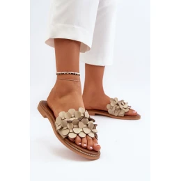 Zazoo 40381 Dámské Kožené Žabky Na Ploché Podrážce Beige