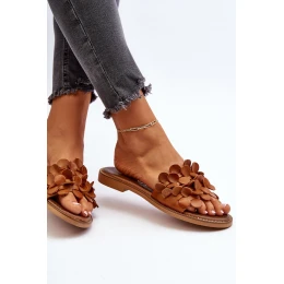 Zazoo 40381 Dámské Kožené Žabky Na Ploché Podrážce Hnědé