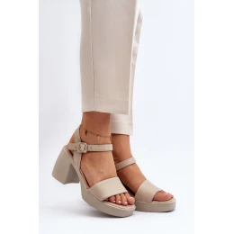 Zazoo 40386 Dámské kožené sandály na podpatku Beige