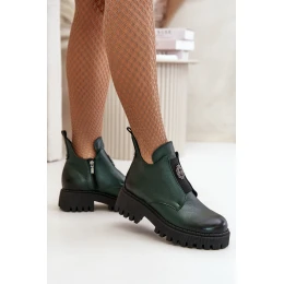 Zazoo 60451 Dámské kožené boty s ozdobou tmavozelené