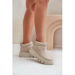 Zazoo 60470 Kožené boty zateplené vlnou na platformě světle béžové