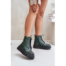 Zazoo 60472 Kožené Boty Na Platformě A Klínu Tmavě Zelené