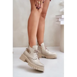 Zazoo 60483 Dámské Kožené Kotníkové Boty S Nízkým Zatepleným Svrškem Béžové