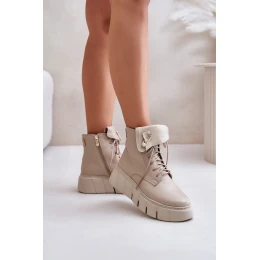 Zazoo 60511 Kožené Boty Dámské Na Platformě Zateplené Béžové