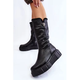 Zazoo 70121 Kožené dámské kozačky s vlnou černé