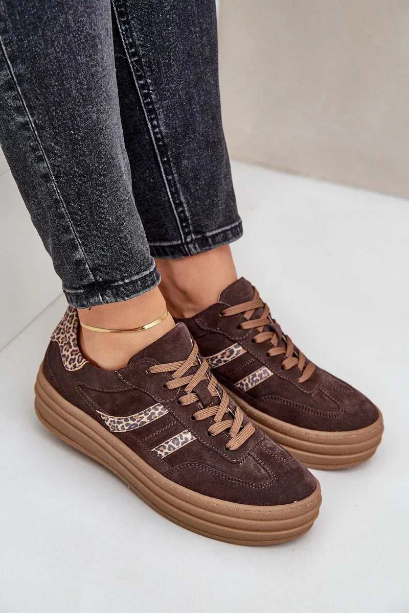 Zazoo N1176 Semišové tenisky na platformě s leopardím vzorem čokoládové