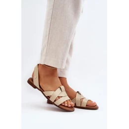 Zazoo Pohodlné kožené nazouvací sandály, béžová