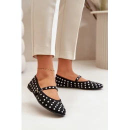 Zdobené baleríny s páskem eko zamšové černé Tirilissa