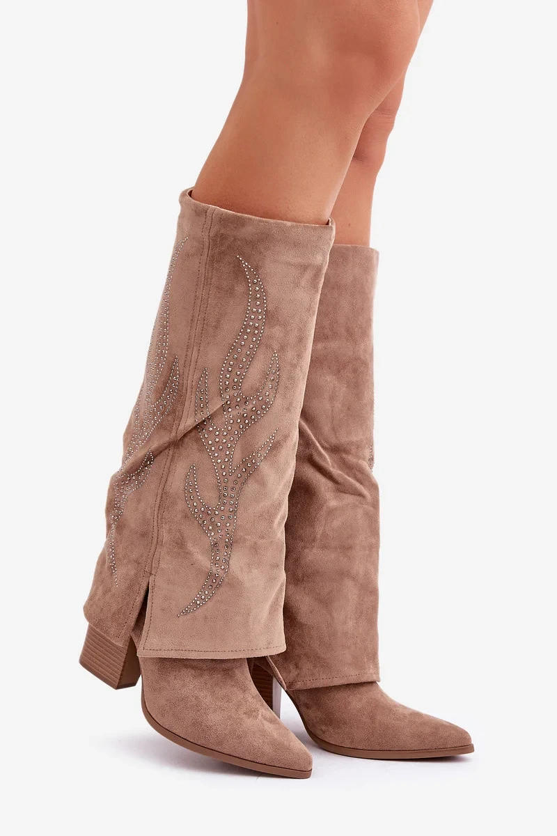 Zdobené Kozačky S Ohnutým Svrškem Na Podpatku Tmavě Béžové Ivilta