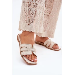 Zdobené pantofle na plochém podpatku béžové Anniles