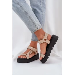Lehké, zdobené dámské sandály z eko kůže jsou skvělým návrhem na teplé dny. Upevněny na platformě, zajišťují pohodlí a stabilitu, přidávající lehkost každému kroku. Zapínání na suchý zip usnadňuje jejich nasazování a přizpůsobení noze. Ozdoby na svršku jim dodávají jemný, módní charakter. Tento model skvěle doplní vaše letní stylizace! Při výběru velikosti se řiďte tabulkou velikostí.