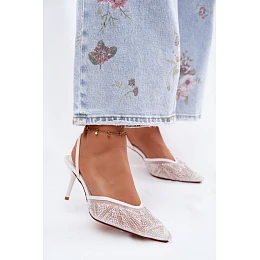 Zdobené sandály s síťkou na jehle bílé Bedira