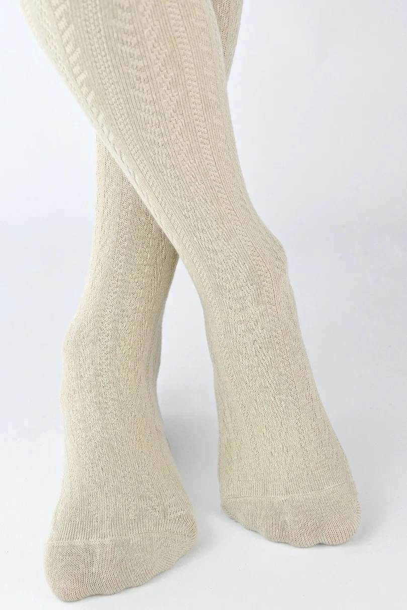Dívčí bavlněné punčochové kalhoty s jemným pruhovaným vzorem ve tvaru rybí kostiór, mimořádně krásně přiléhající k noze.