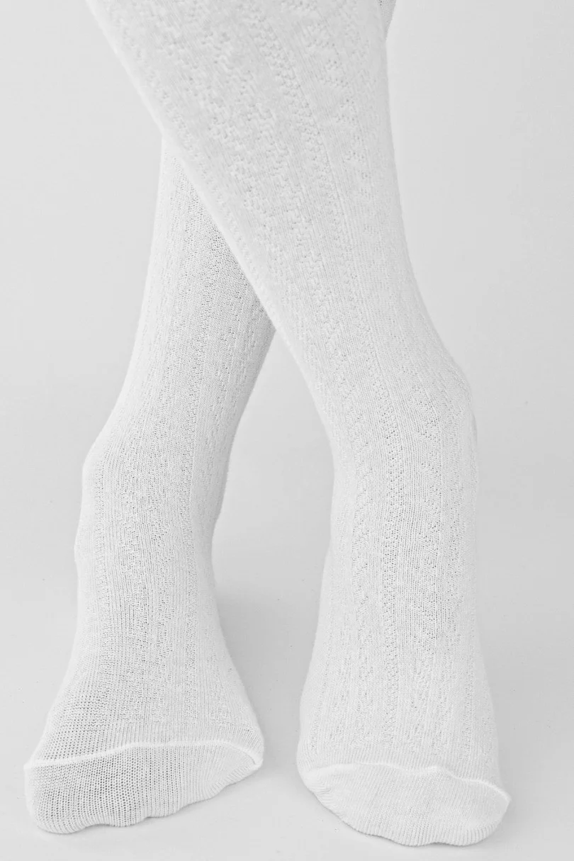 Bavlněné dívčí punčochové kalhoty s jemným vzorem rybí kosti a žebrovaným vzorem, které krásně přiléhají k noze.