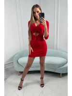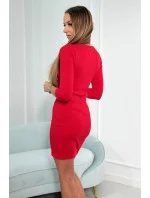Žebrované šaty s vázaným výstřihem červené