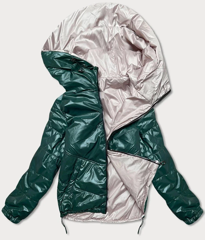 Zelená/béžová dámská oboustranná bunda Ż (BH-2204)