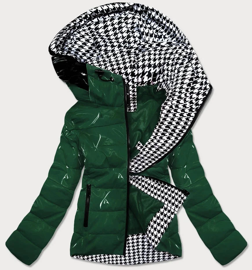 Zelená dámská bunda se vzorovanou podšívkou (W707)