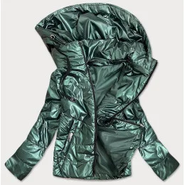 Zelená lesklá dámská bunda s kapucí (B9575)