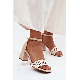 Ženské sandály na podpatku s pleteným vzorem světle béžové Felena