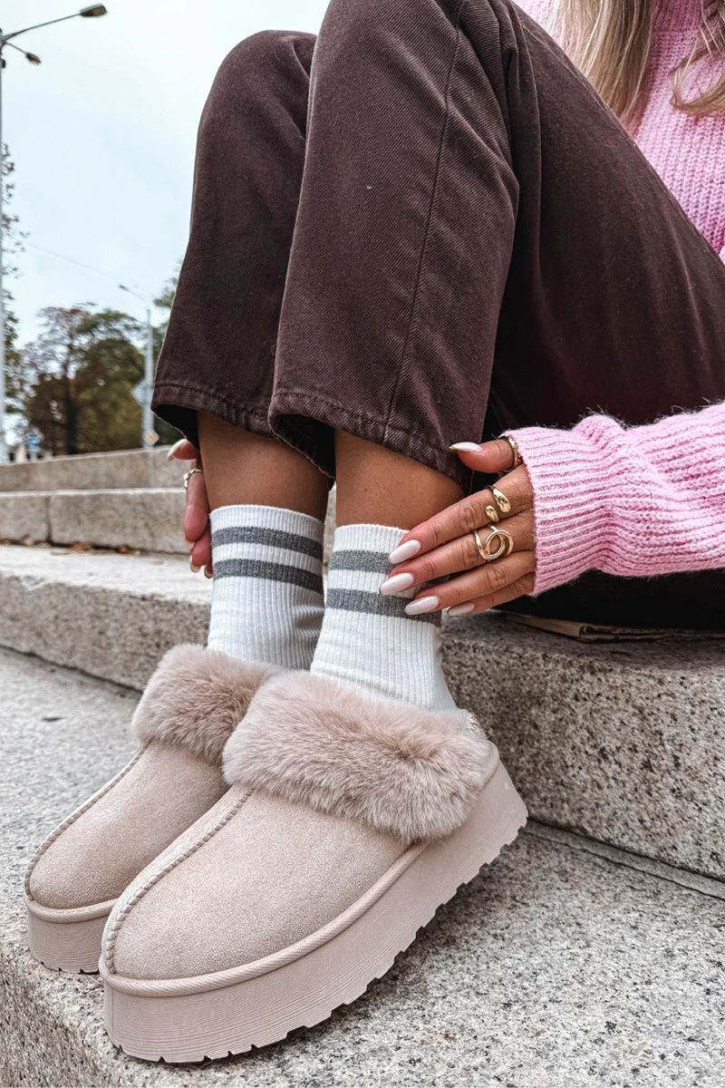 Ženské Sněhule Na Platformě S Kožešinou A Přezkou Béžové Querina