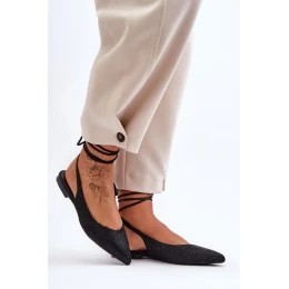 Tyto moderní dámské baleríny jsou osazeny na rovném podpatku a zdobeny malými kovovými kamínky. Mají otevřenou patu a špičku. Tento model je utažený kolem lýtka. Měkká eko kůže vložka zajišťuje pohodlí při nošení. Podrážka je protiskluzová. Při výběru velikosti se řiďte tabulkou velikostí.