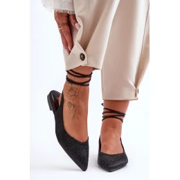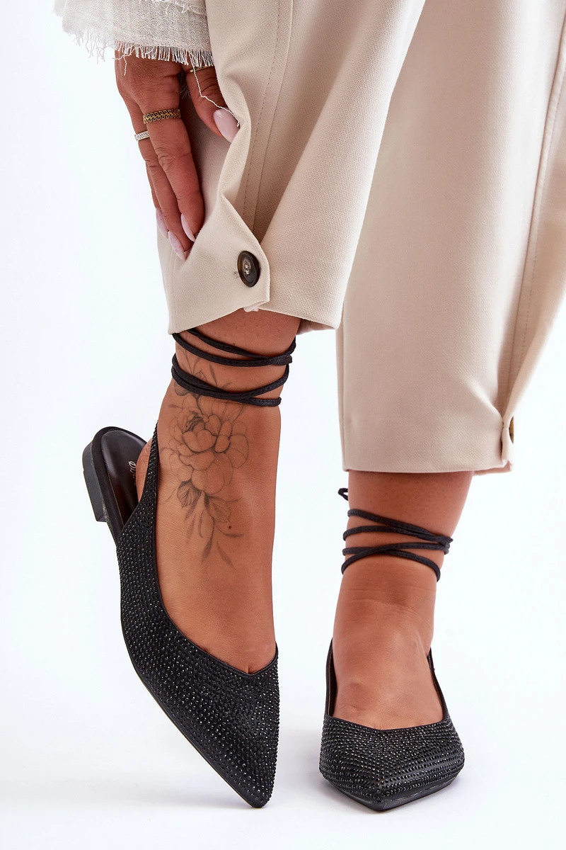 Tyto moderní dámské baleríny jsou osazeny na rovném podpatku a zdobeny malými kovovými kamínky. Mají otevřenou patu a špičku. Tento model je utažený kolem lýtka. Měkká eko kůže vložka zajišťuje pohodlí při nošení. Podrážka je protiskluzová. Při výběru velikosti se řiďte tabulkou velikostí.