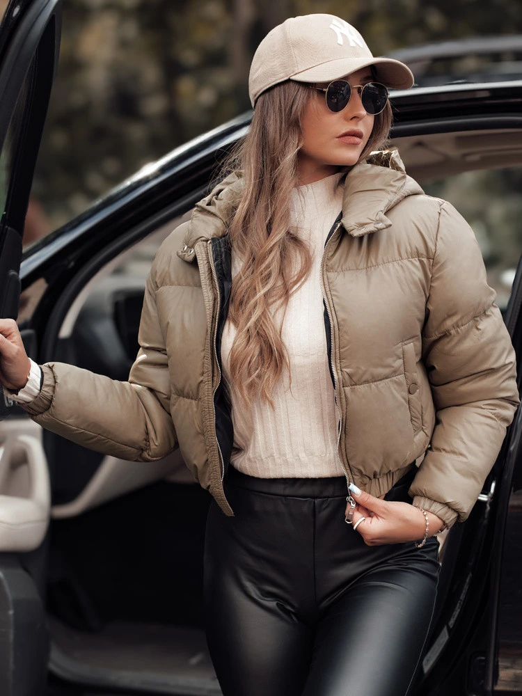 ZENZI prošívaná dámská zimní bunda s kapucí béžová FashionStreet TY4722
