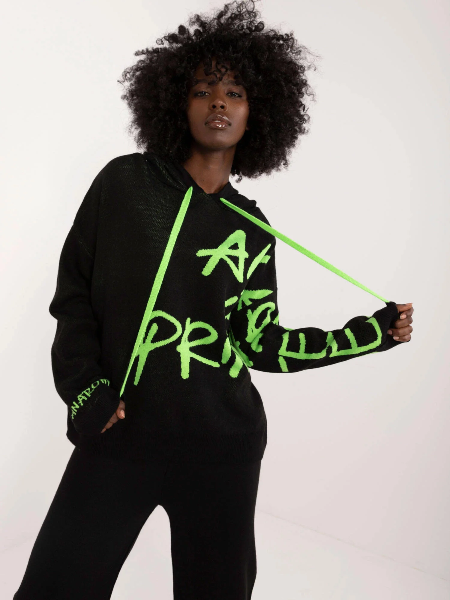 Černo/zelený dvoudílný komplet - svetr s kapucí a široké kalhoty (1469)