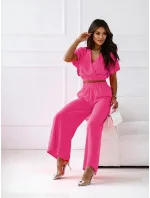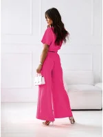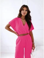 Dámská souprava ve fuchsijové barvě - přeložený obálkový top a široké kalhoty (8178)