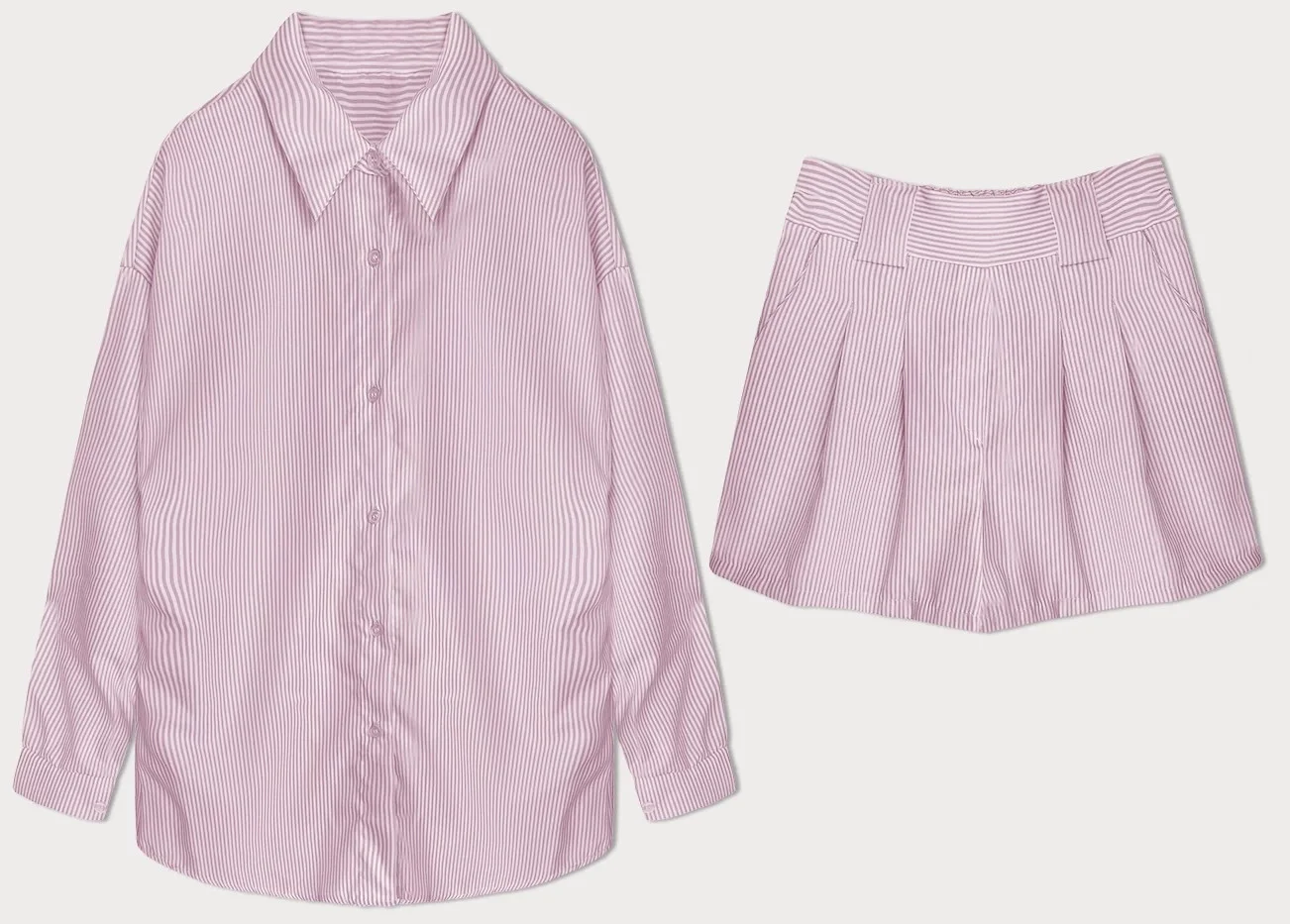 Růžová dámská pruhovaná souprava - košile a šortky (16071)