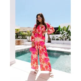 Růžovo-béžová souprava - zavazovací halenka a široké kalhoty (8175)
