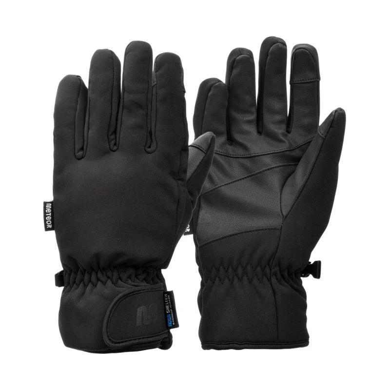 Zimní rukavice Meteor Snorra černé 17737-17738-17739-17740 Zimní rukavice Meteor se osvědčí při zimních outdoorových aktivitách. Unisex. Konstrukce z odolných materiálů podporuje ochranu proti chladu a větru. Vnější vrstva je odolná proti oděru, nepromokavá a nepropouští vlhkost. Vnitřní část je vyrobena z měkkého materiálu. Gumové pásky na zápěstí chrání vnitřní stranu rukavic před chladem a sněhem zvenčí. Úchyty, které umožňují volné zavěšení rukavic na zápěstí, když se nepoužívají. Přezky zabraňují ztrátě jedné rukavice. Konstrukce s pěti prsty nabízí volnost pohybu a nenarušuje cit ruky. Technické údaje:- Materiál: 60% nylon, 35% polyuretan, 5% ostatní- Voděodolnost: ano.