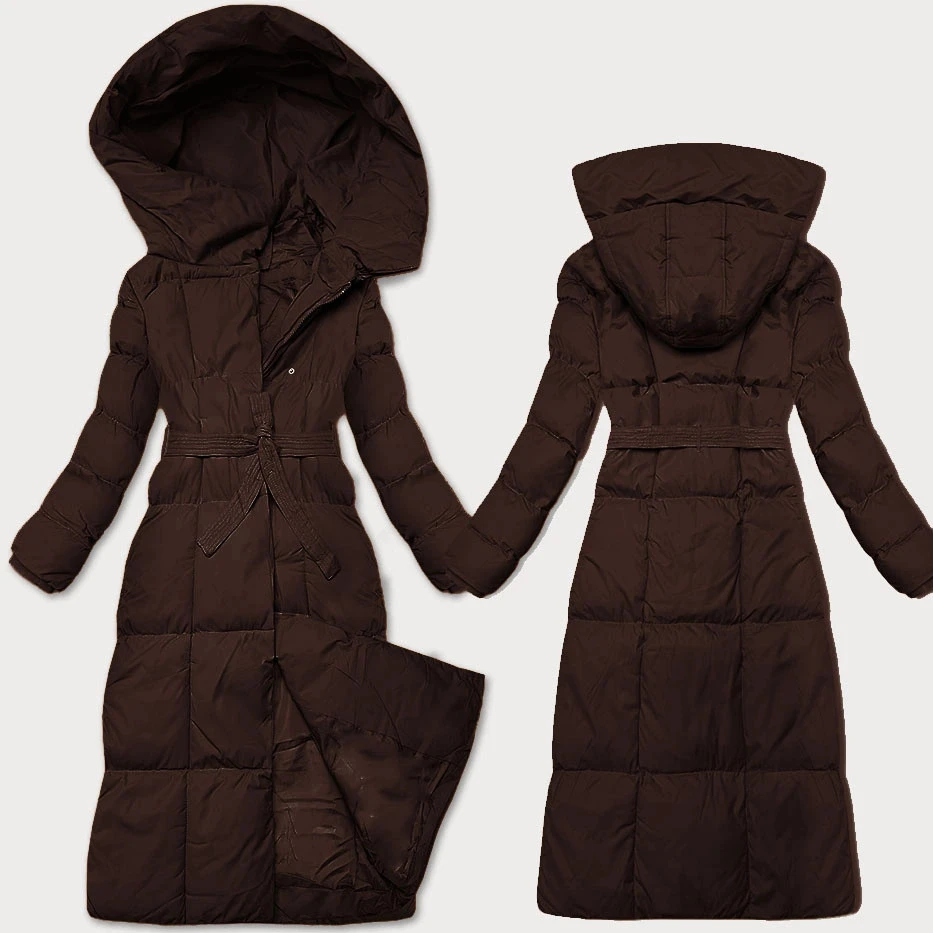 Dámská zimní bunda v čokoládové barvě s páskem J Style (5M3227-158)