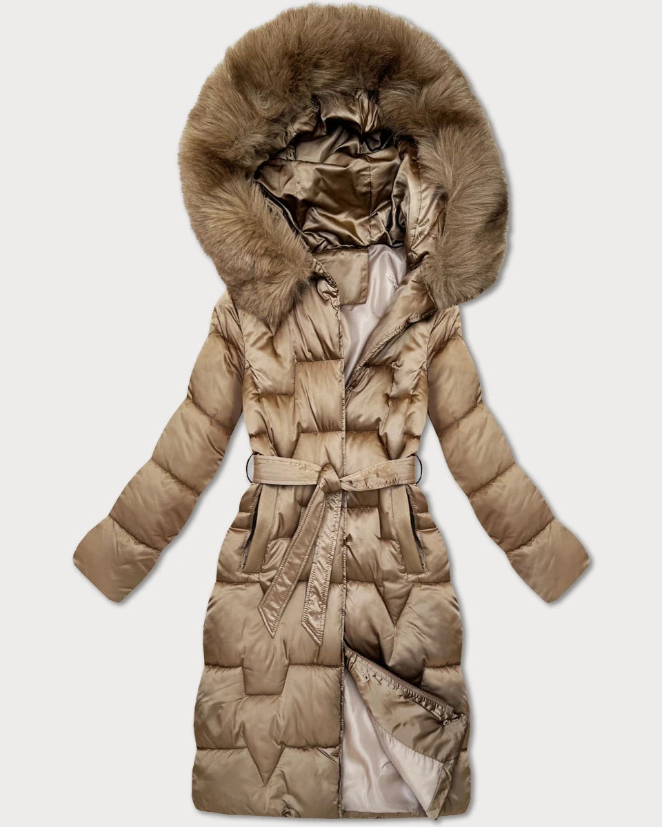 Béžová dámská zimní bunda s páskem S'West (B8305-12)