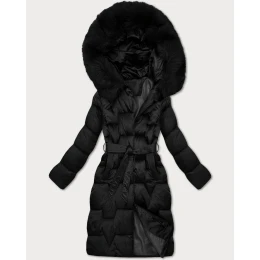Černá dámská zimní bunda s páskem S'West (B8305-1)