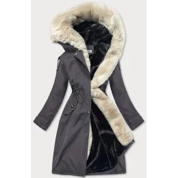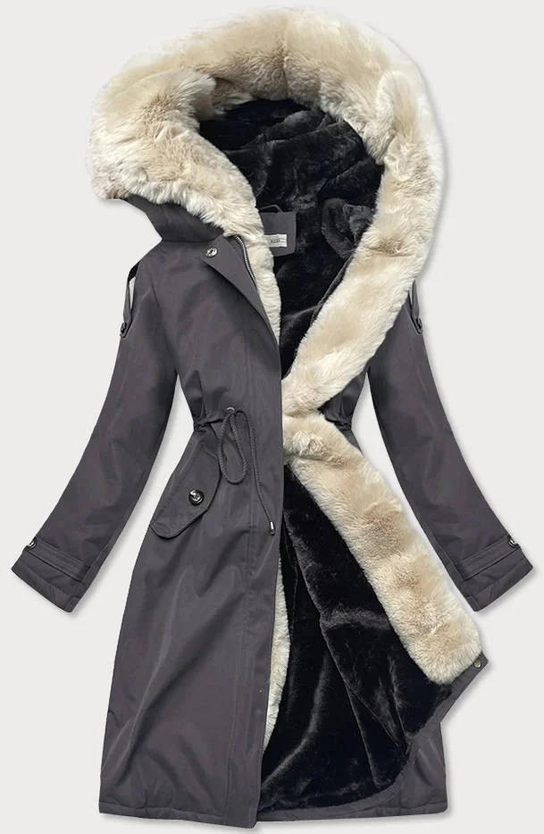 Grafitovo-ecru-grafitová dámská bavlněná zimní bunda (fm03-f11)