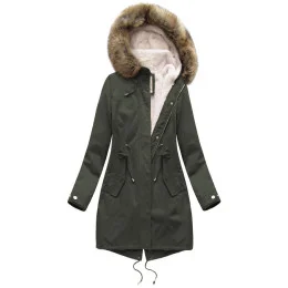 Dámská zimní bunda parka v army barvě s odepínací podšívkou a kapucí (7626BIG)