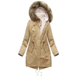 Béžová dámská zimní bunda parka s odepínací podšívkou a kapucí (7626BIG)
