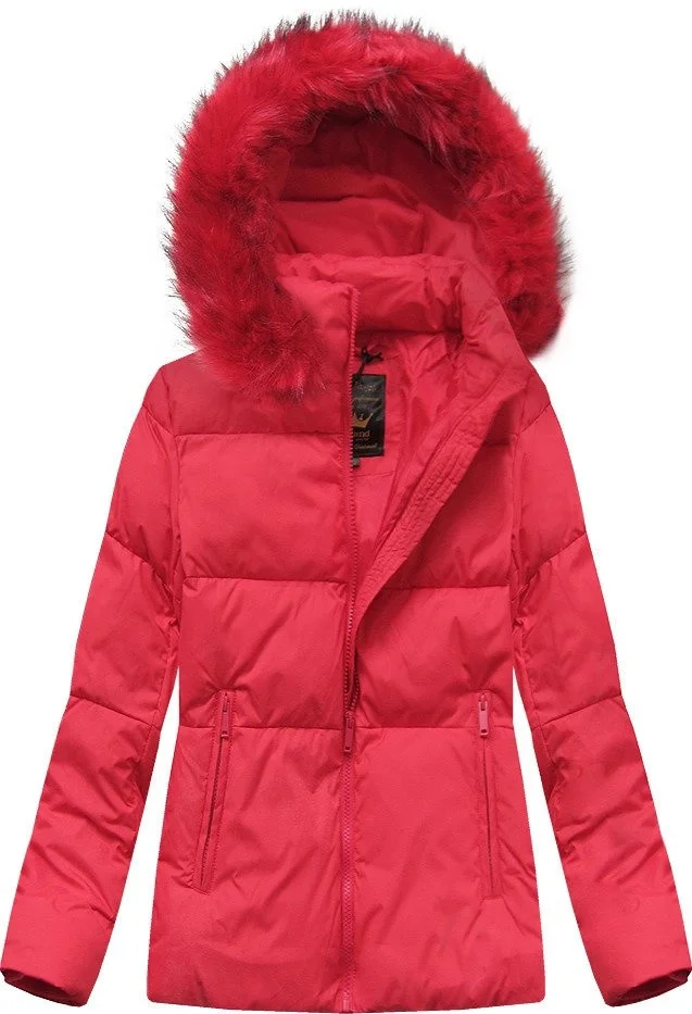 Červená krátká dámská zimní prošívaná bunda (7694)