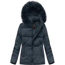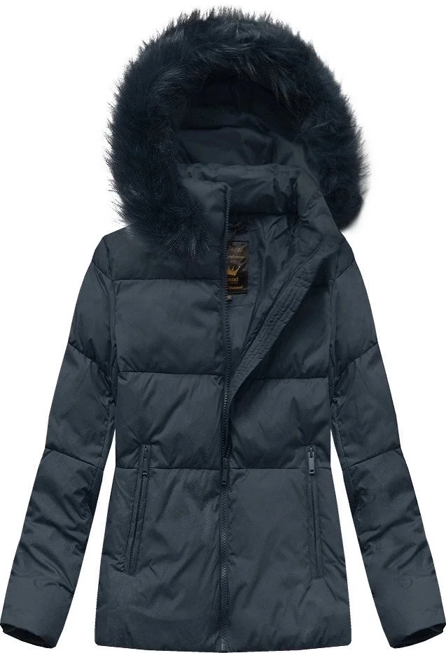 Tmavě modrá krátká dámská zimní prošívaná bunda (7694)